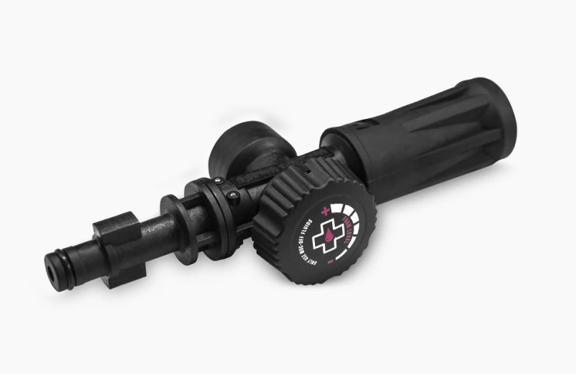 The adjustable Snow Foam Lance allows you to apply Muc-Off Bike Cleaner, Concentrate or Snow Foam onto the surface of the bike. You can simply screw any of these three bottles directly onto the Snow Foam Lance and you're ready to go. There's no need to mix with any additional water. The pressure washer will mix water and detergent automatically to the desired dilution you've set by adjusting the dial.